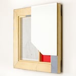 Spray paint, primer, vinyl board, basswood off cuts, corrugated paint backdrop, pin nails, reclaimed birch panel